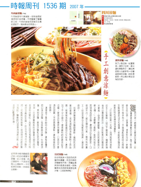 賀喜 林四川涼麵登上最新期時報周刊雜誌報導(2007,1536期,7/27~8/2)