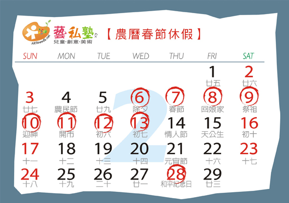 【課務】春節假期停課通知
